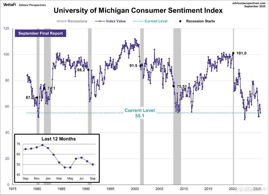 密歇根大学调查负责人Joanne Hsu表示,9月消费者信心指数虽较4月、5月的低点有所上升,但本月较上月下降约5%,且下滑趋势在不同年龄、收入和教育水平群体中普遍存在。