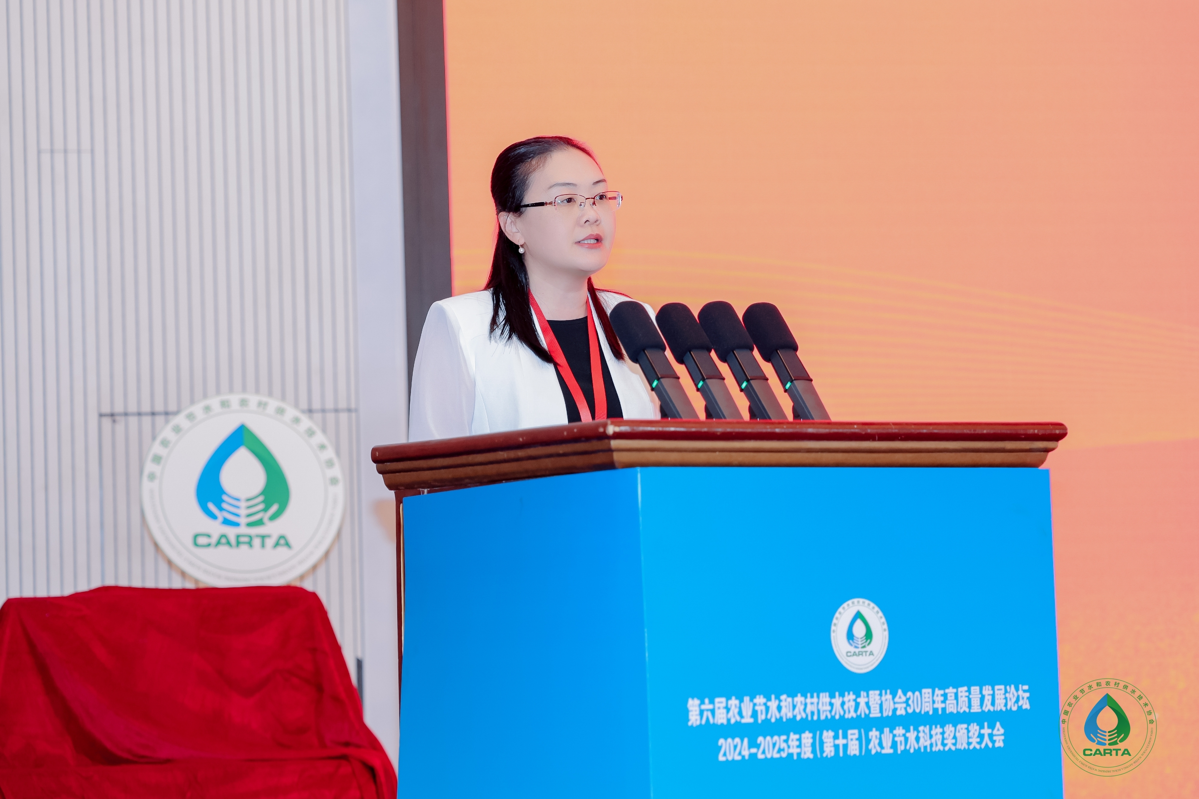 中国农业节水和农村供水技术协会副会长、北京大北农集团股份有限公司副总裁王丹玉宣读获奖文件