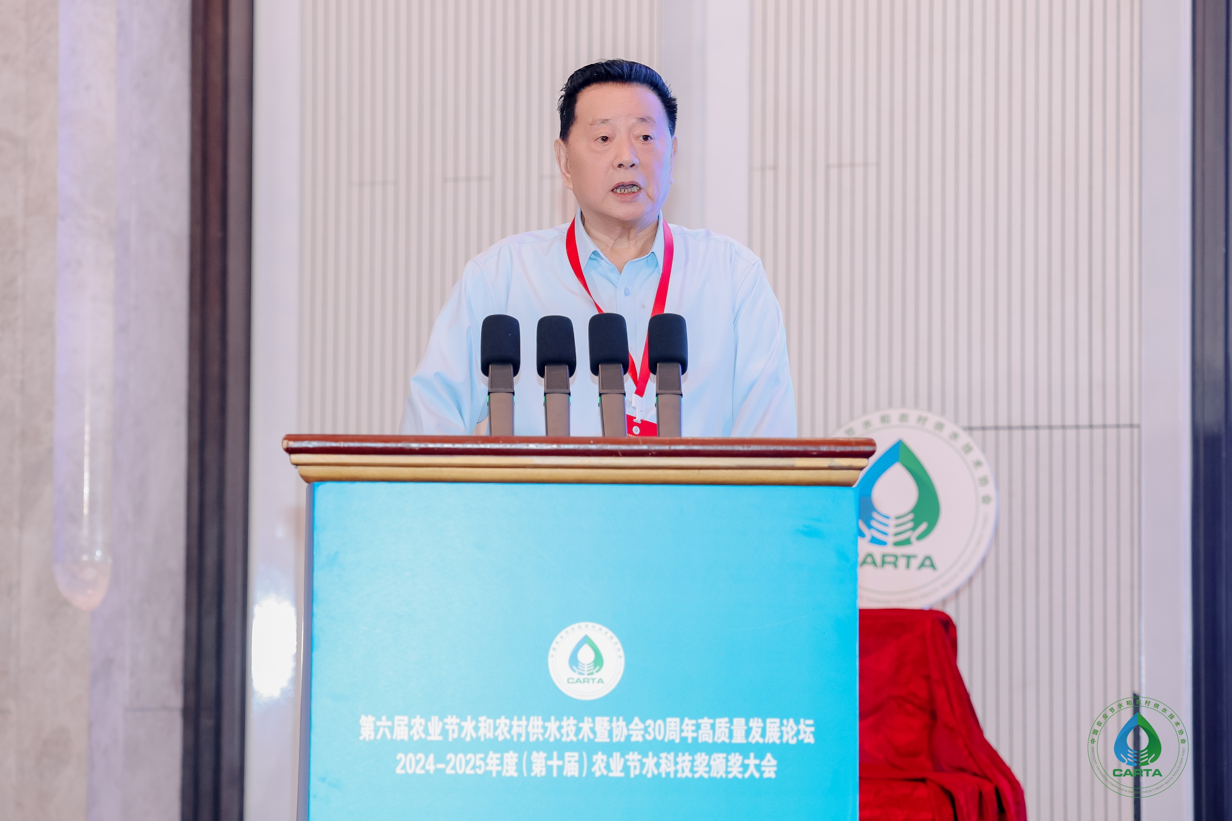 中国农业节水和农村供水技术协会会长原会长、水利部原副部长翟浩辉在回顾协会历程时指出,协会始终扮演政策制定的“建言者”、科技创新的“推动者”与行业进步的“服务者”三重关键角色。他肯定协会通过搭建平台、评选科技奖等方式有效激发了行业创新活力,并希望协会未来深化产学研用融合,为事业高质量发展持续注入智慧动能。