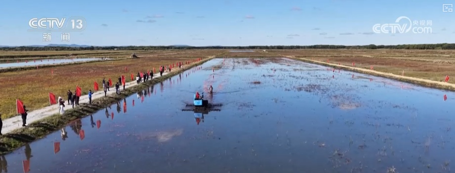 在位于黑龙江抚远市的蔓越莓种植基地,水上打果机的应用让采摘更加高效。工人们先将蔓越莓田里注满水,然后驾驶打果机在水中穿梭作业。机械臂搅动间,一颗颗红色的果实脱离枝蔓漂浮到水面上,工人们利用专业工具将蔓越莓聚拢到一起完成收获。